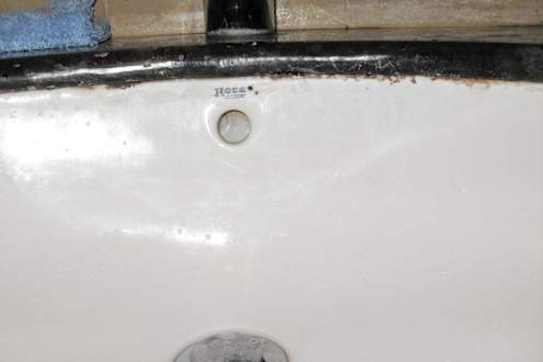 Schimmel unterhalb des Waschbeckenrandes