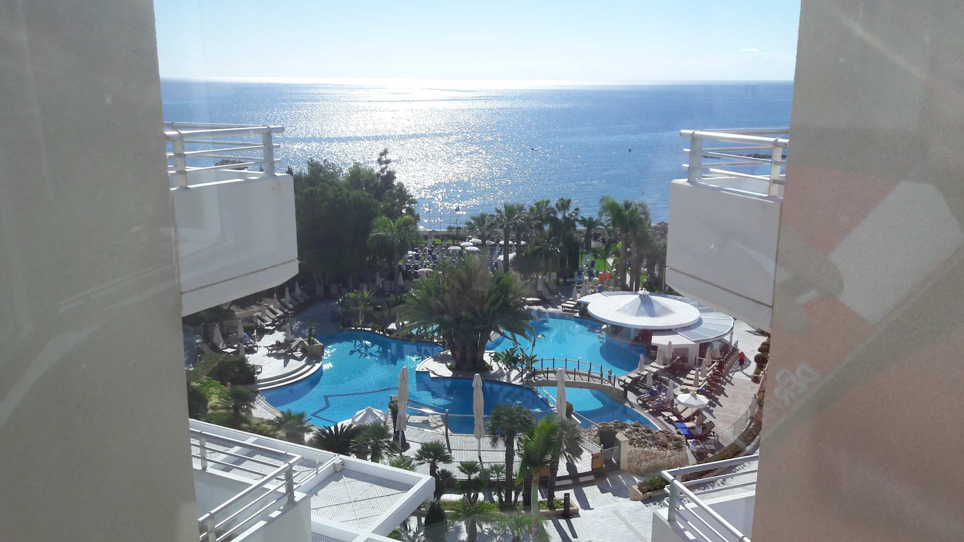 Ausblick aus dem Hotel Richtung Strand über die Poolanlage