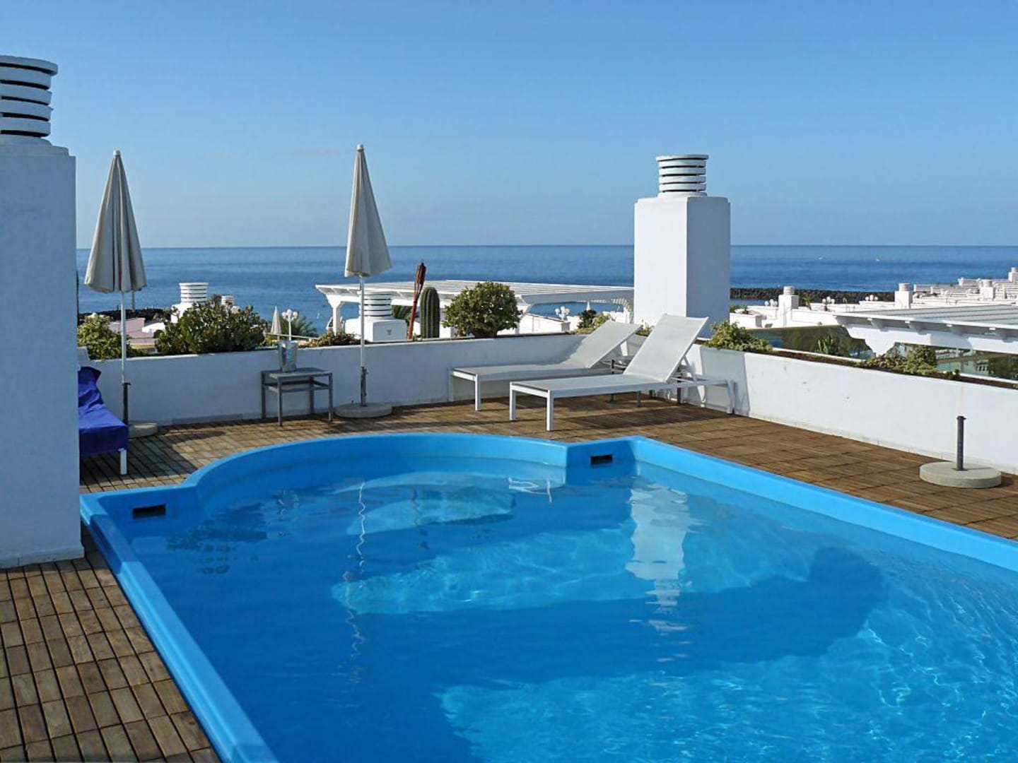 Mediterranean PalaceMeer-Blick von der Sonnen-Terrasse und Mini-Pool von Hotel Mediterranean Palace. (4 Stock)
