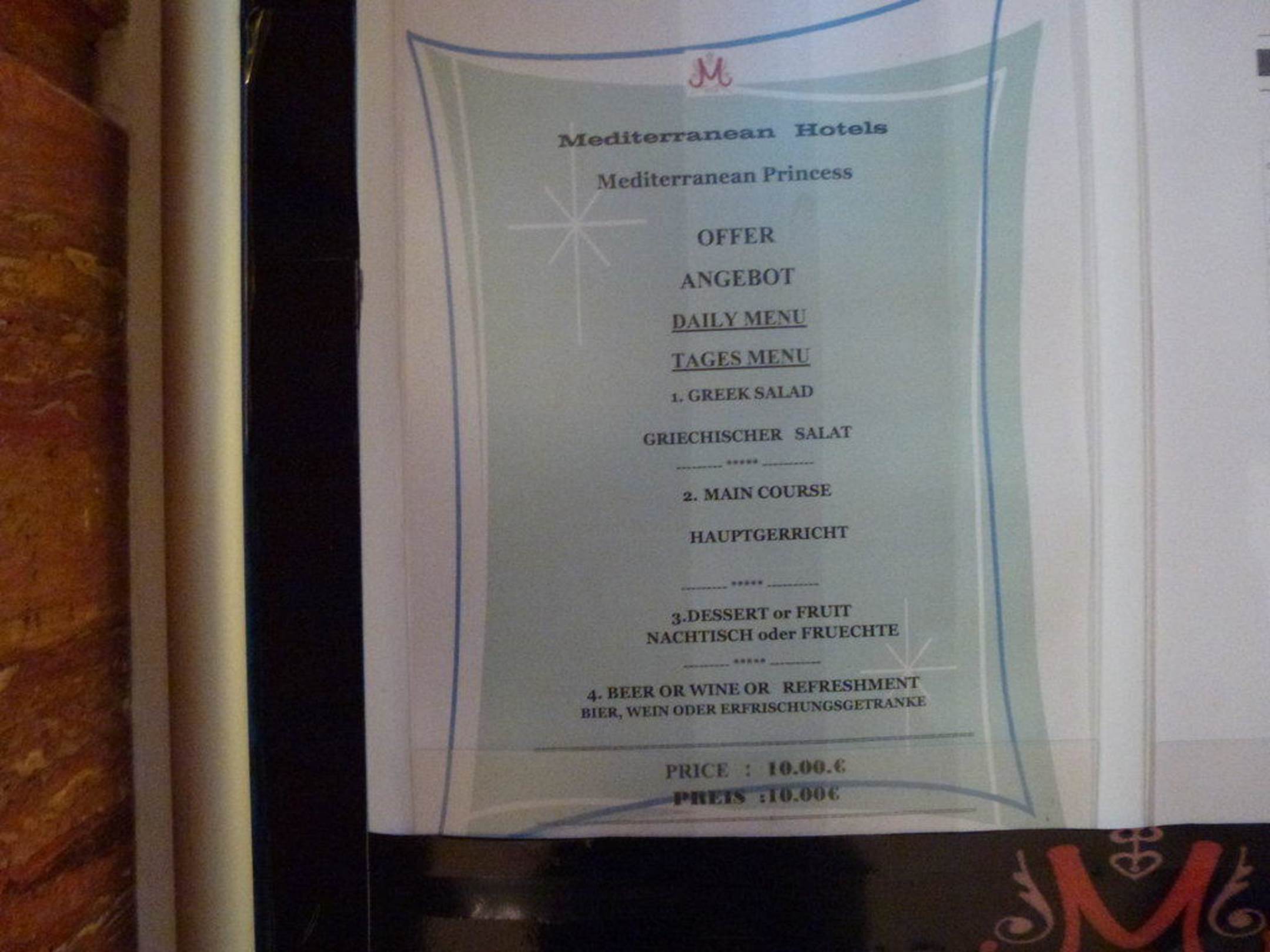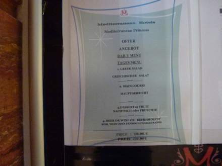 Menukarte Mediterranean Princess