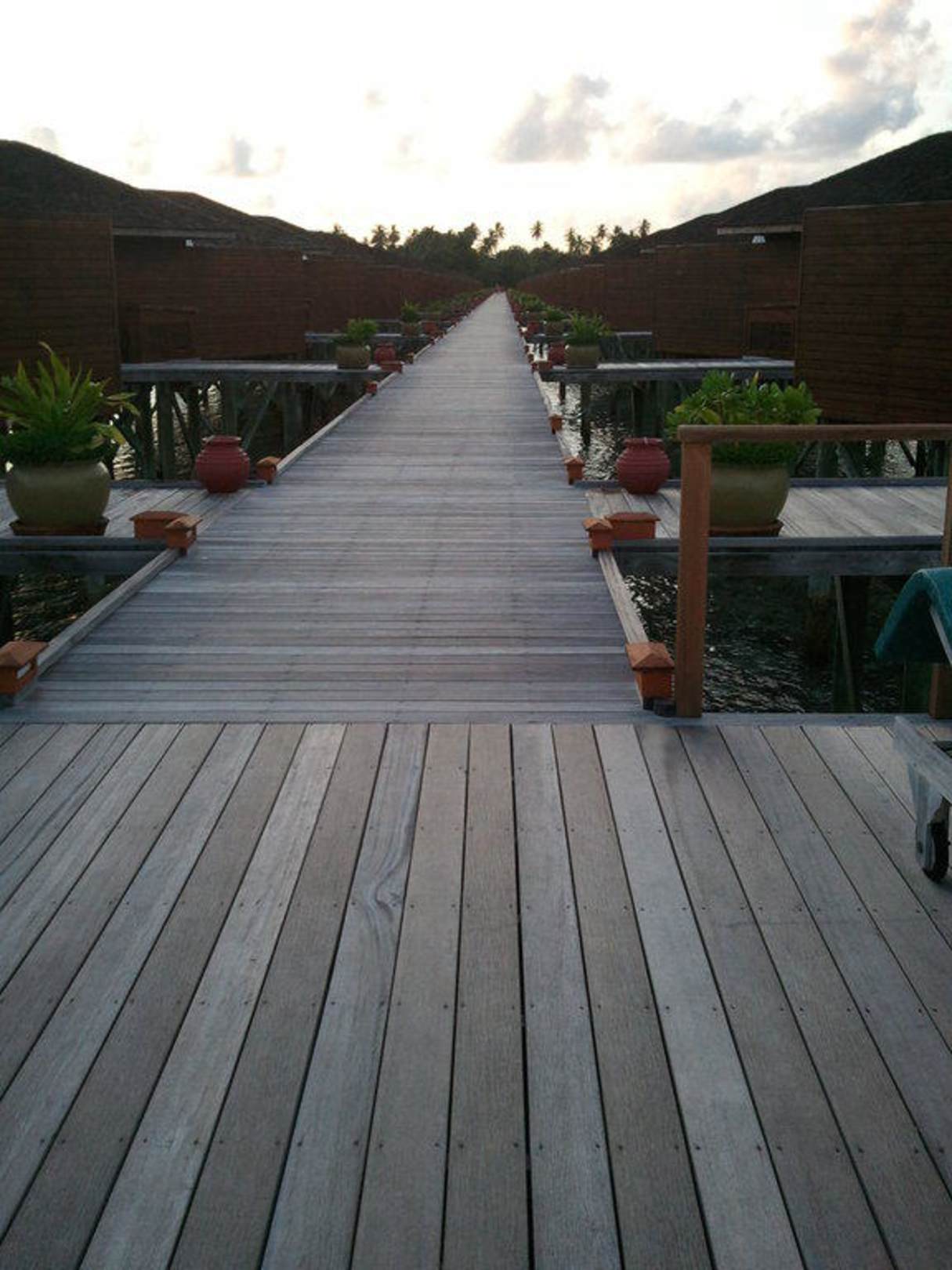 Der Steg auf der Südseite von den Jacuzzi Water Villa Nummern 301-344