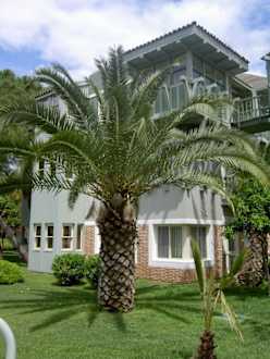 Hinter der Palme der Block K in welchem unser Zimmer war.