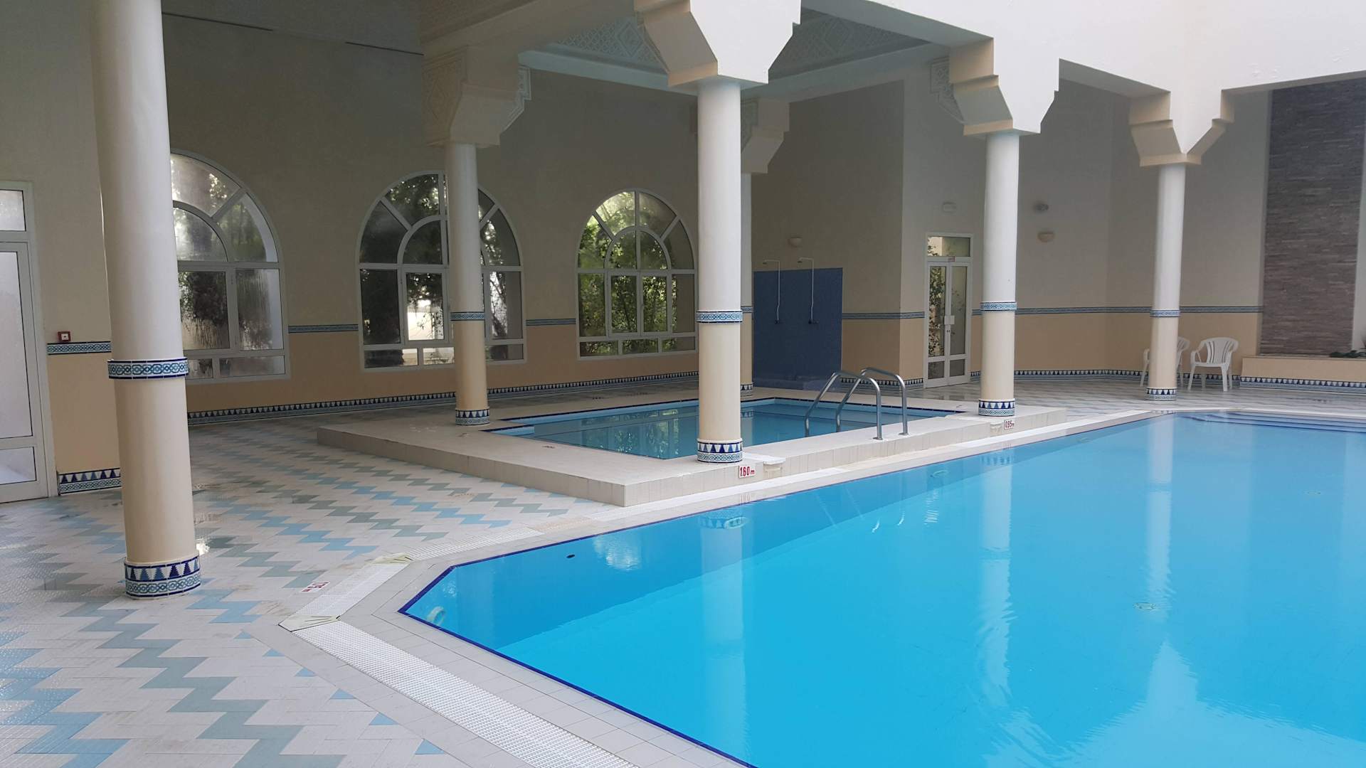 Die Schwimmhalle mit Jacuzzi.