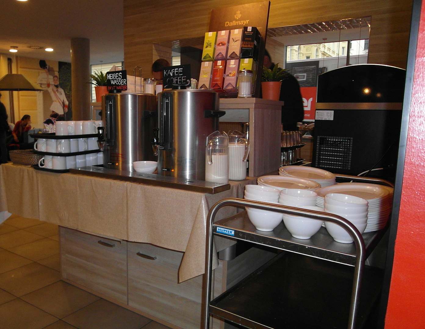 Kaffee und heißes Wasser für Tee