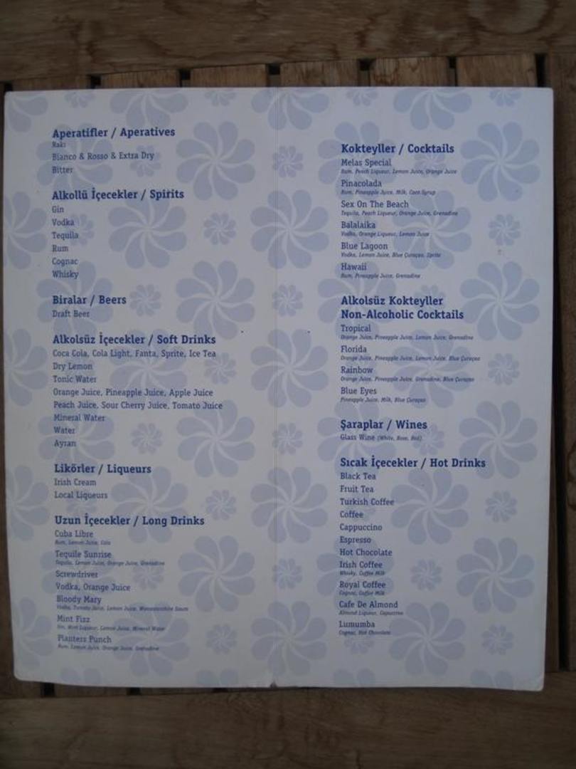 Getränkekarte vom Melas Lara