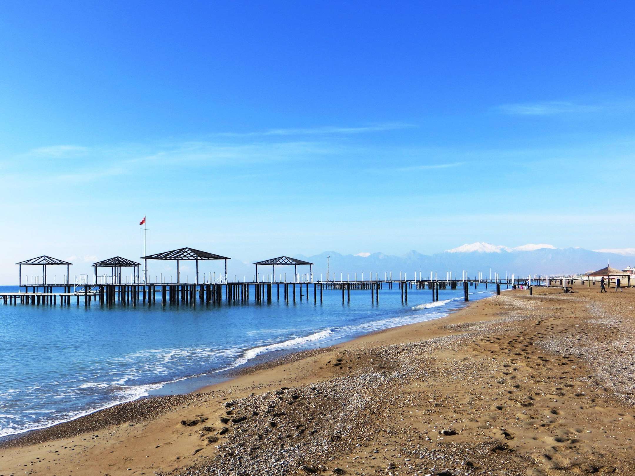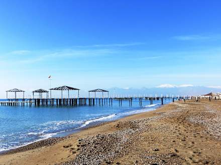 Der Hotelstrand mit Blick auf das Taurusgebirge