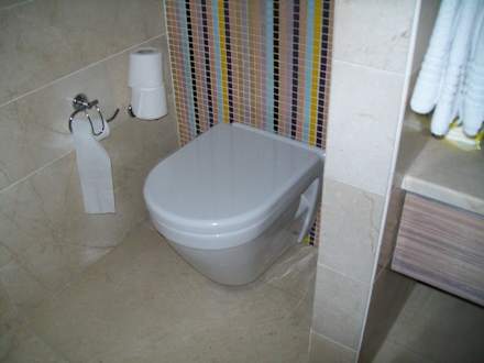 Links die Toilette rechts die Dusche