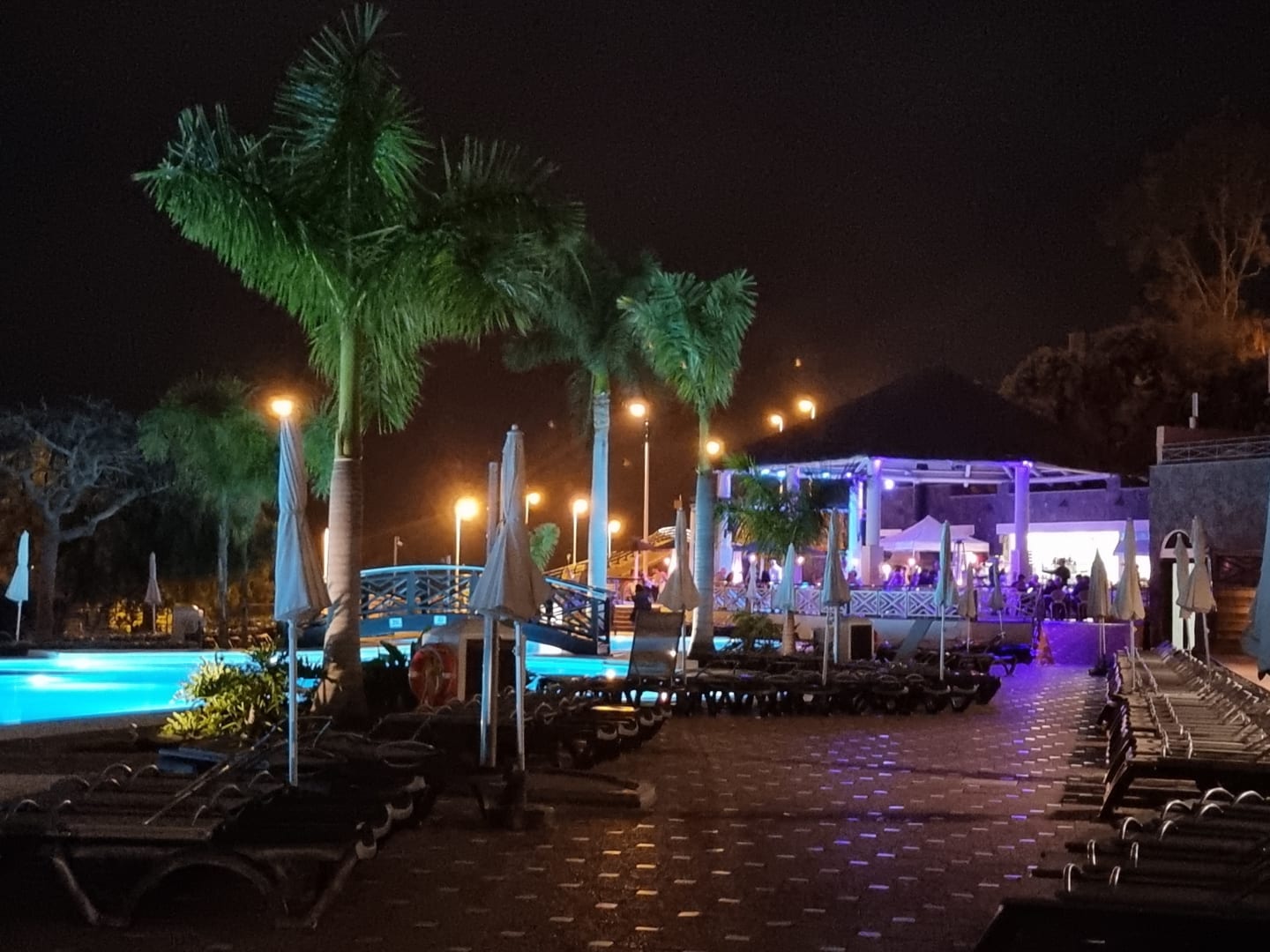 Bei Nacht mit Poolbar
