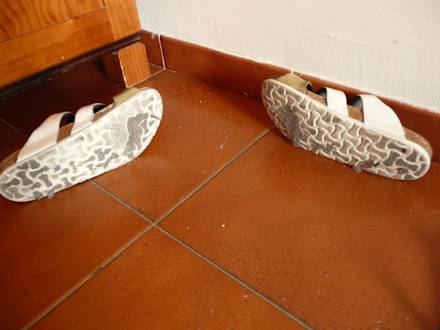Der Dreck hat sich an den Schlappen gesammelt