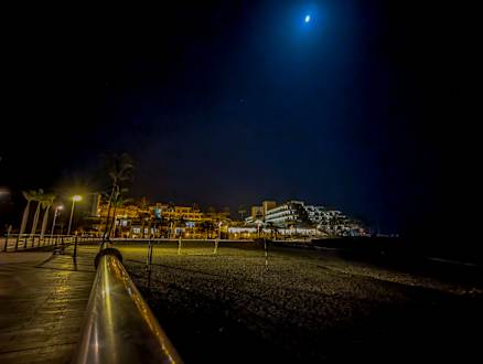 Blick vom Strand zum Hotel am Abend