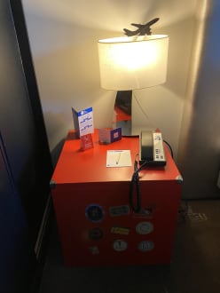 Nachttisch im Zimmer. Nett gemacht.