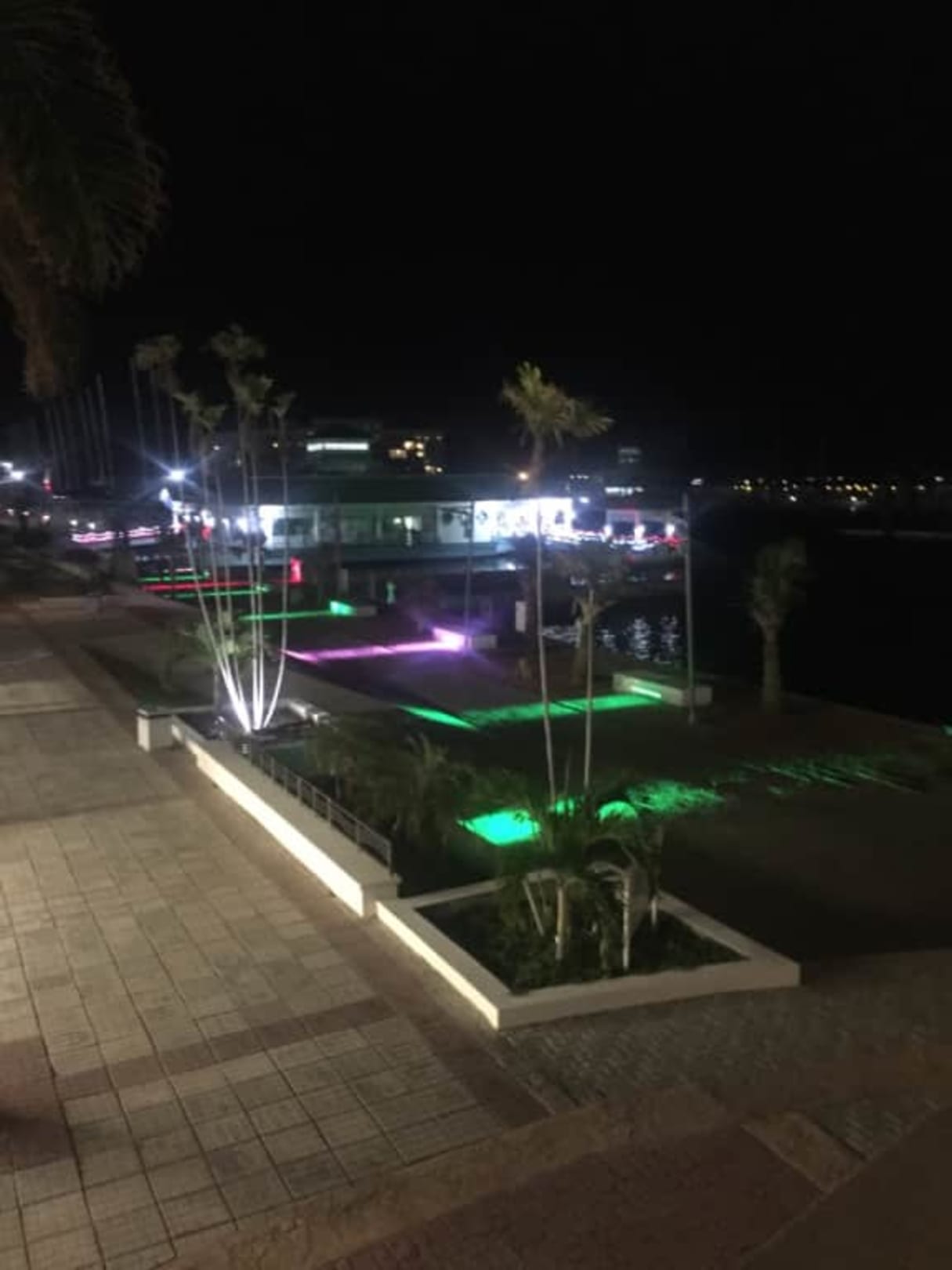 Promenada hotelowa pięknie oświetlona nocą
