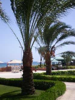 Blick zum Strand und strandbar