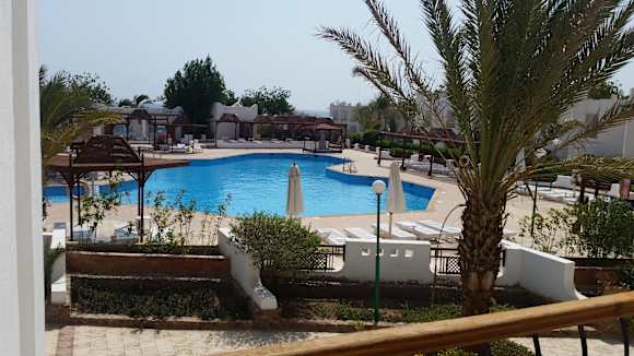 Poolblick mit Meer im Hintergrund