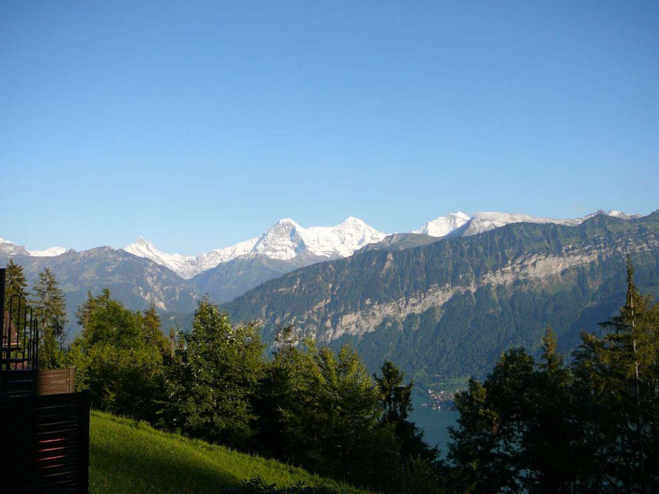 Von den Hotelzimmern hat man einen wunderschönen Blick auf die berühmte Bergkette des Berner Oberlandes. Man blickt auf den Eiger, den Mönch und die Jungfrau.