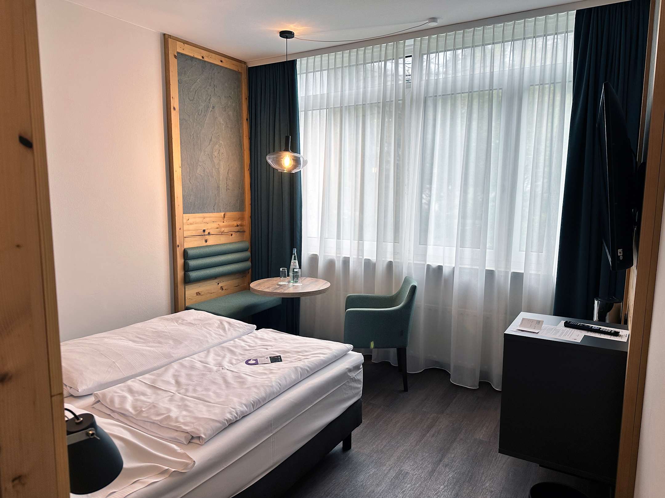 Zimmer, nicht sehr groß aber sehr schön eingerichtet. Mit Kühlschrank
