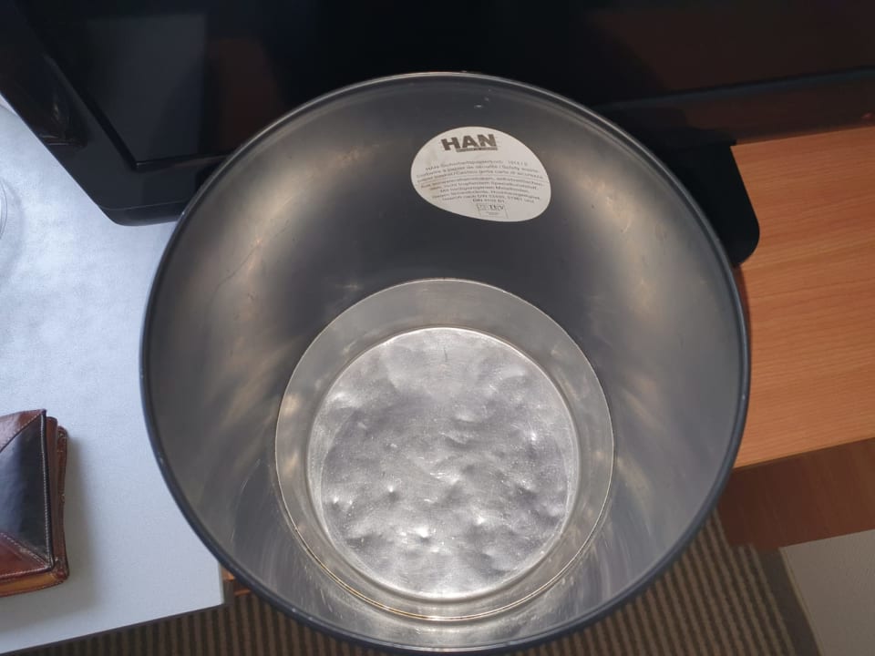 Feuerfester Mülleimer mit Hinweis