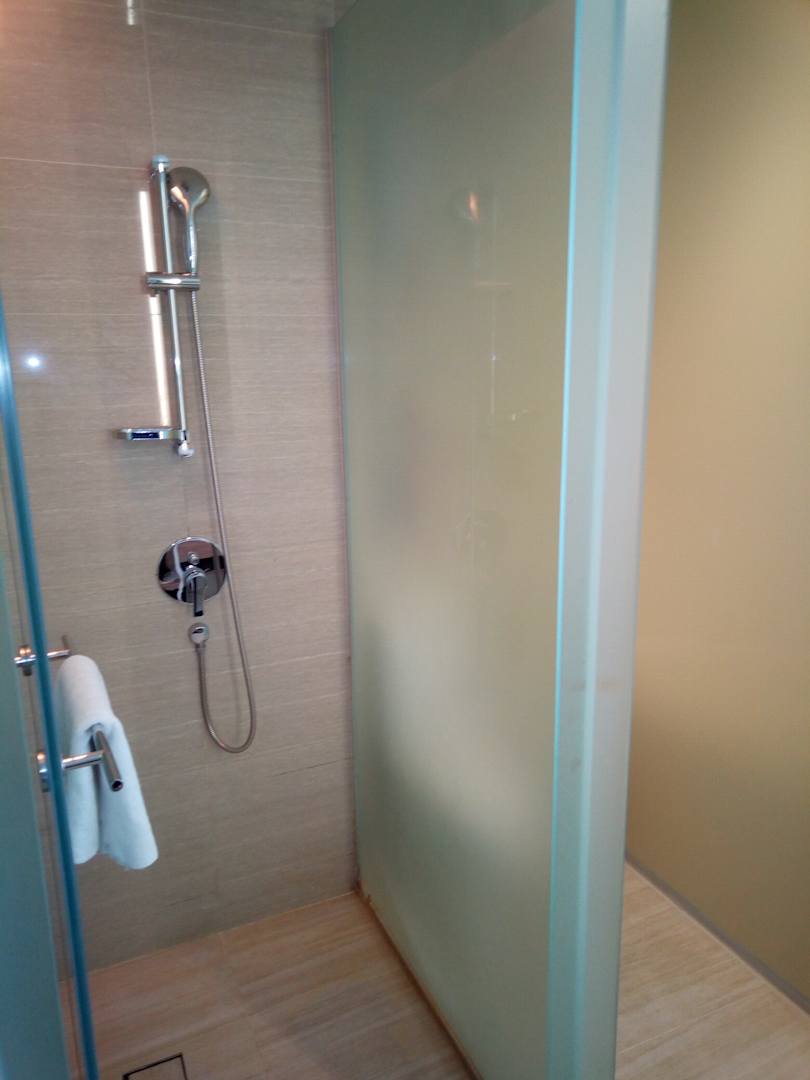 Dusche, daneben Toilette