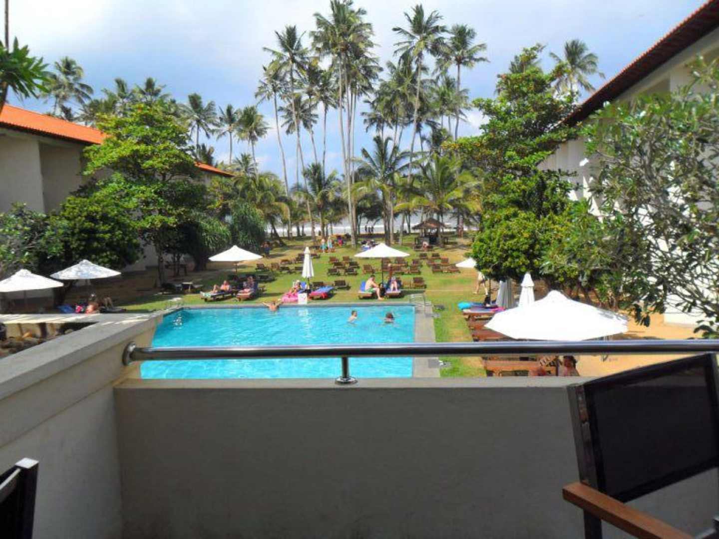 Der Ausblick von der Restaurant-Terrasse in Richtung Pool/Meer
