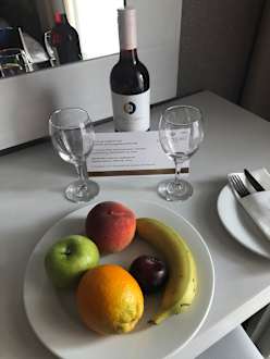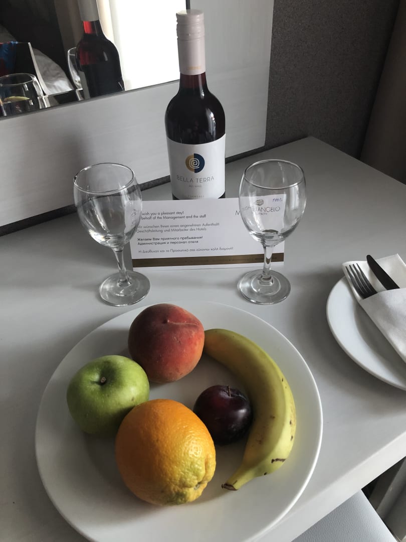 Zur Begrüßung frisches Obst und eine Flasche Rotwein