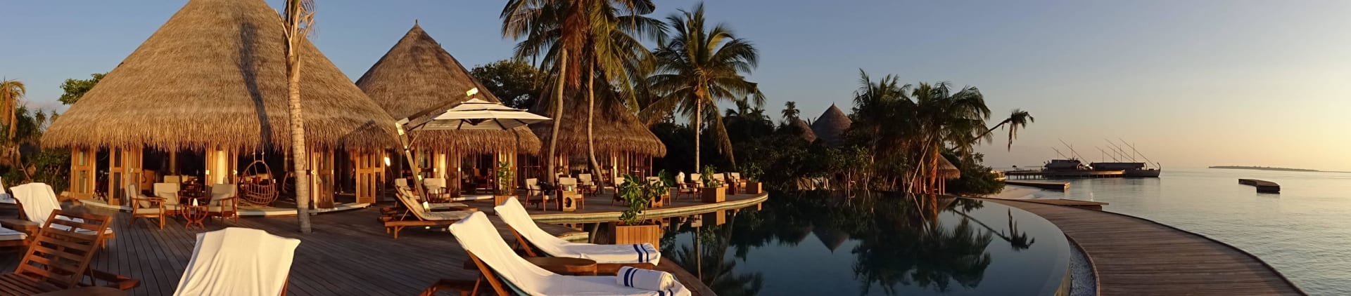 Panoramablick auf Pool und Bar
