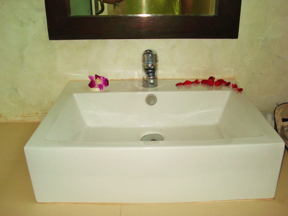 Sogar das Waschbecken war mit Blumen dekoriert