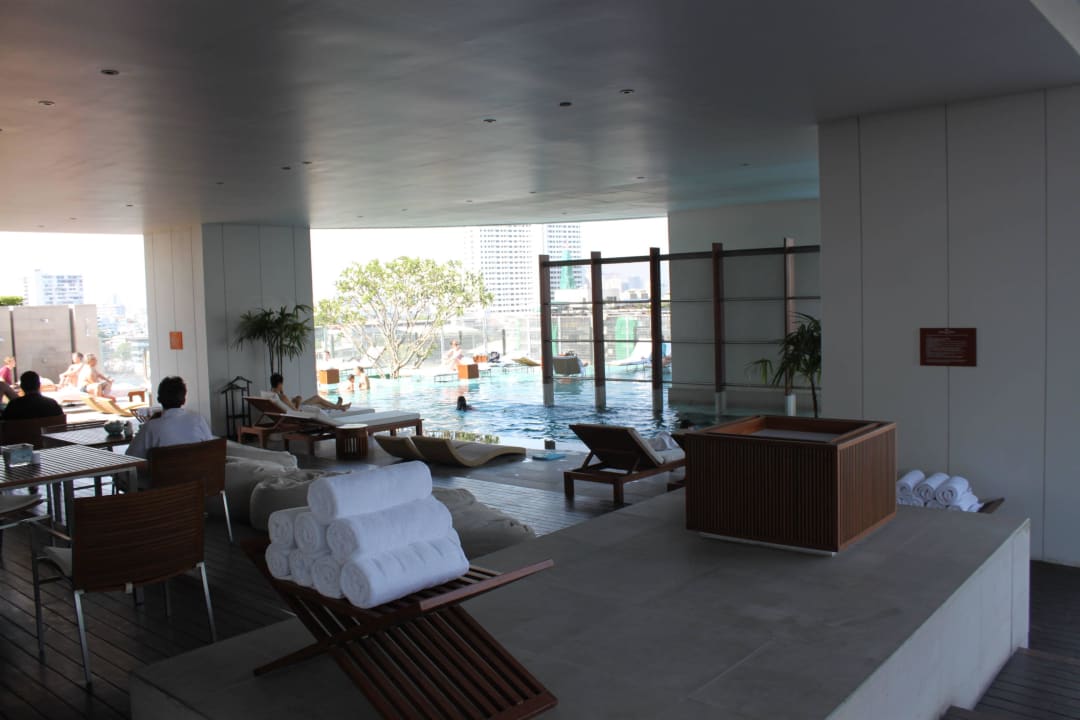 Großer Pool und Fitnessbereich auf der Dachterrasse