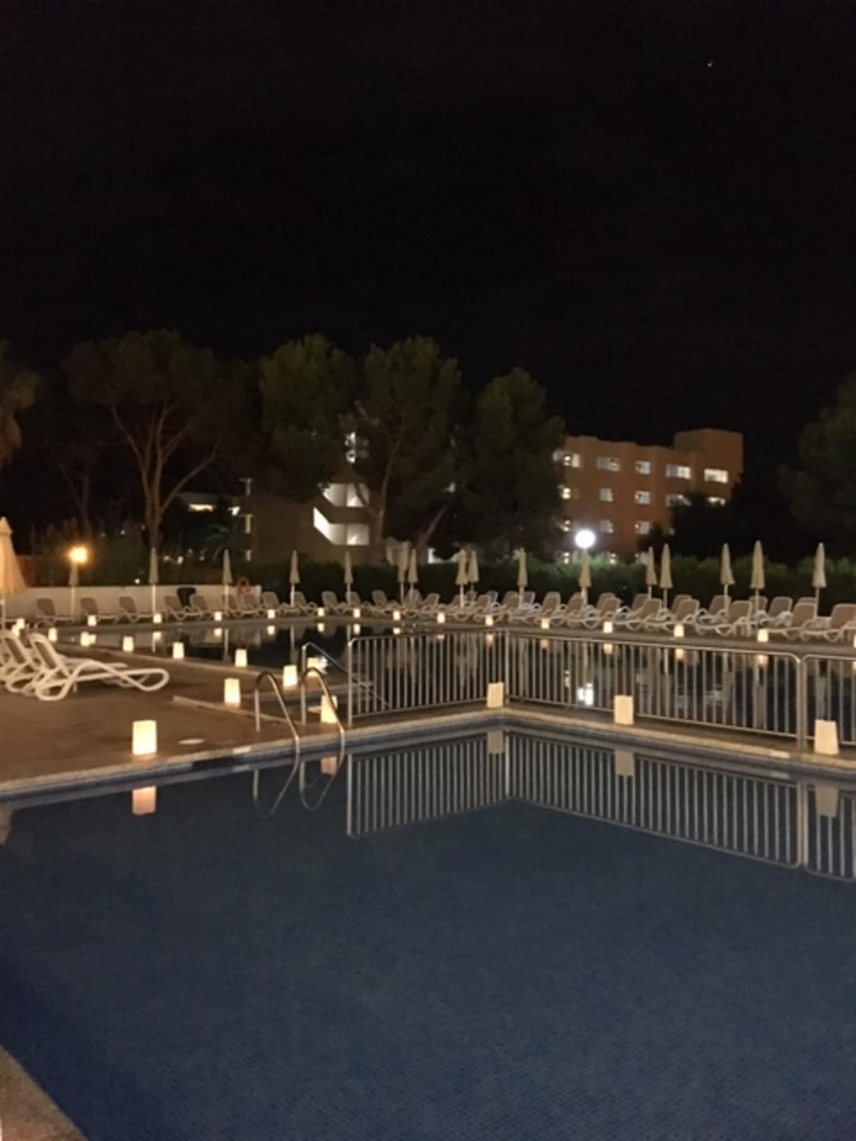 Poolanlage am Abend