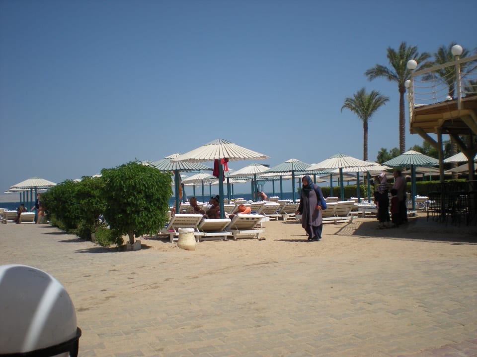 Strand van het hotelheerlijk strand goede zonnebedden en parasols