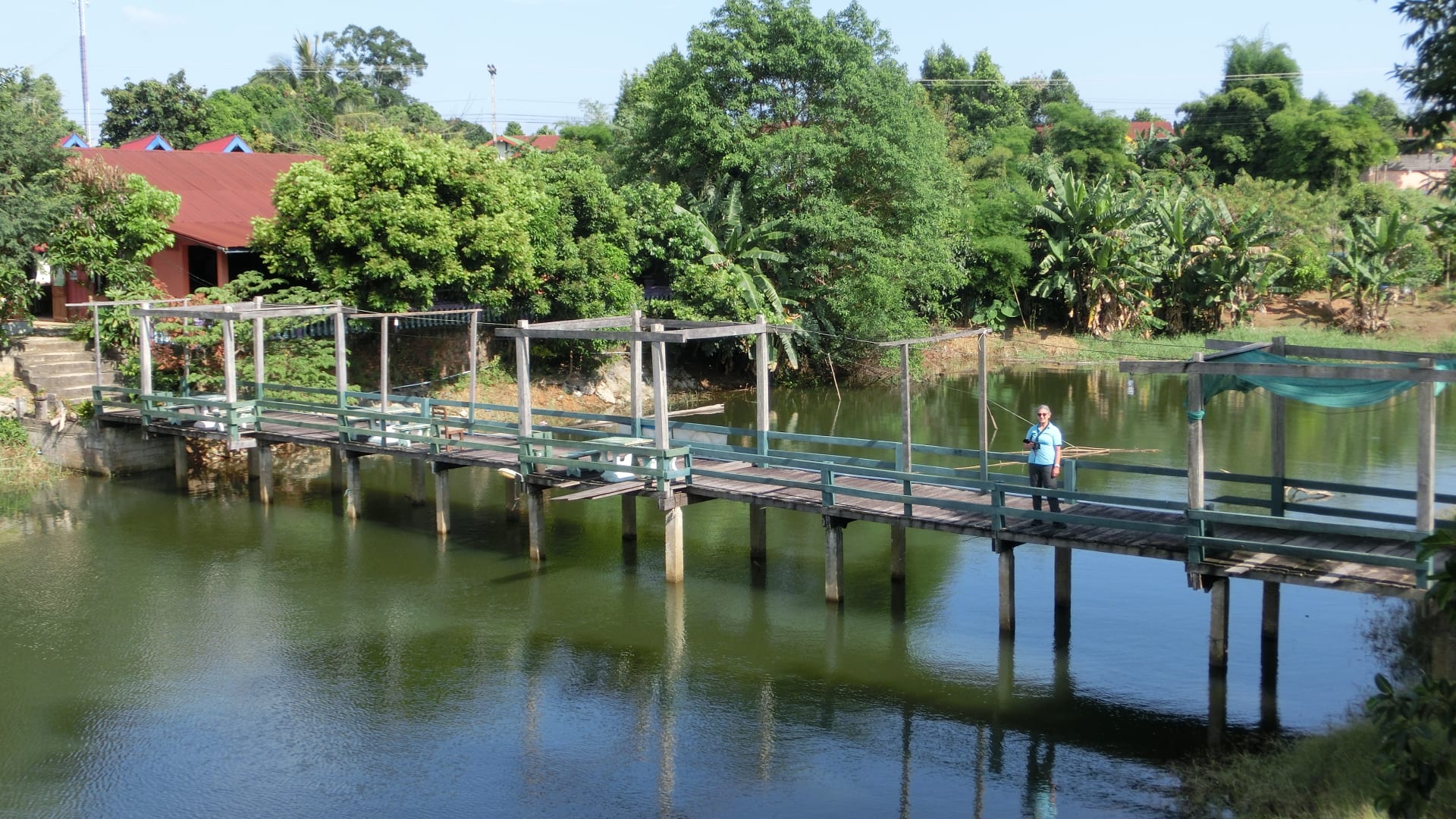 Übergang vom Restaurant ( links ) zu den am anderen Ufer liegenden Unterkünften