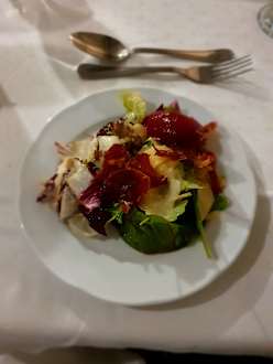 Einmal in der Woche gibt es ein 5 Gänge Strand Menü. Hier Entree Salat.