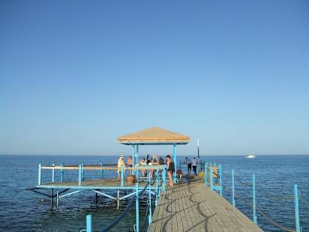 Blick auf die Hoteleigene Seebrücke am Hausriff