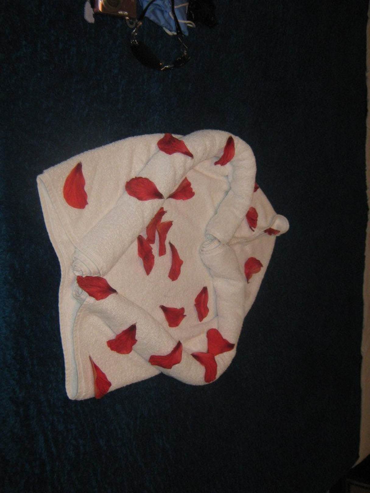 Ein Herz aus Handtuch mit Blüten Deko