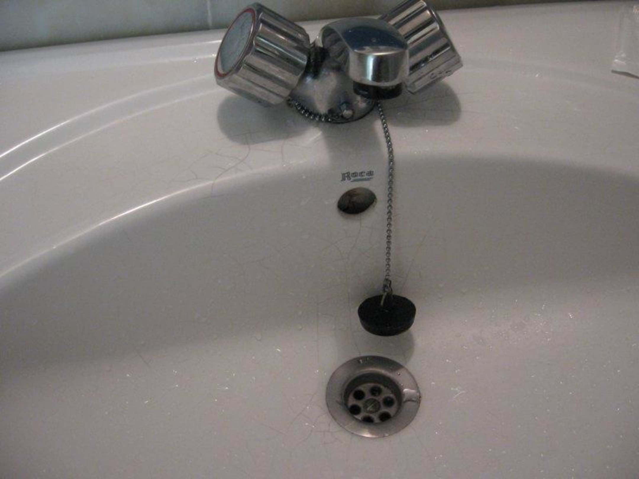Abgenutzes Waschbecken mit Billigarmaturen