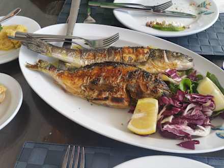 Frischer Fisch im griechischen Restaurant. Einfach nur gut.
