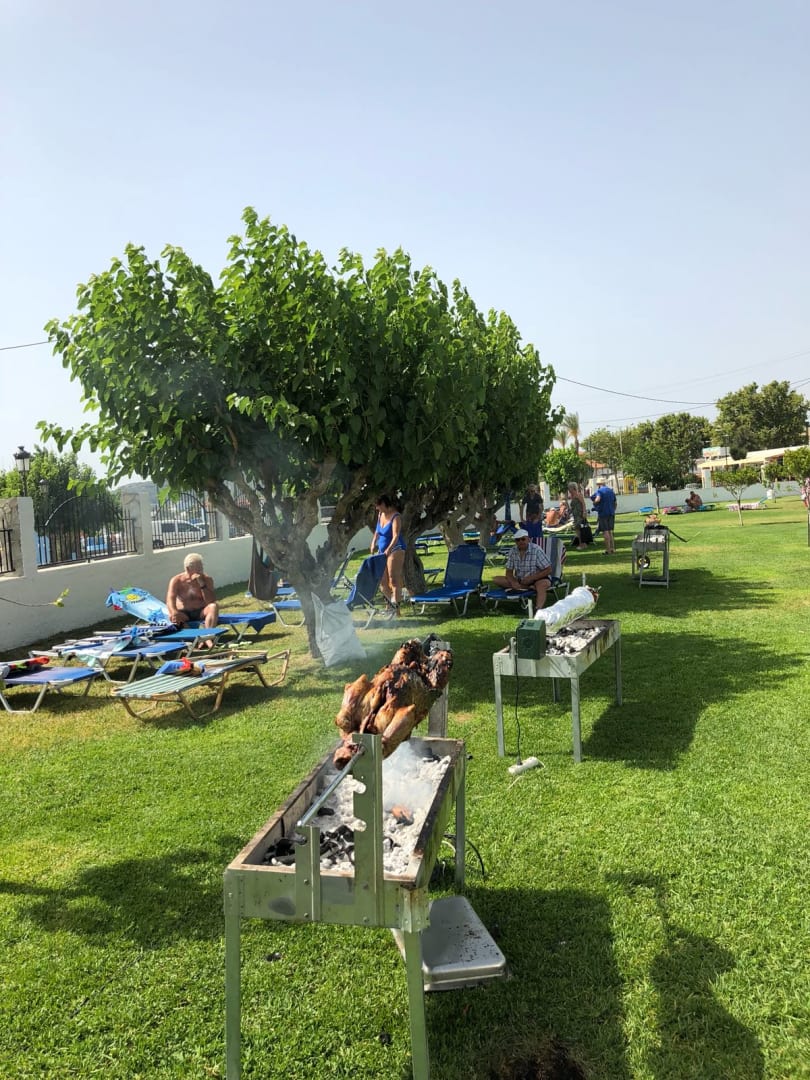 Barbecue mit Spanferkel, Souvlaki und Hähnchen