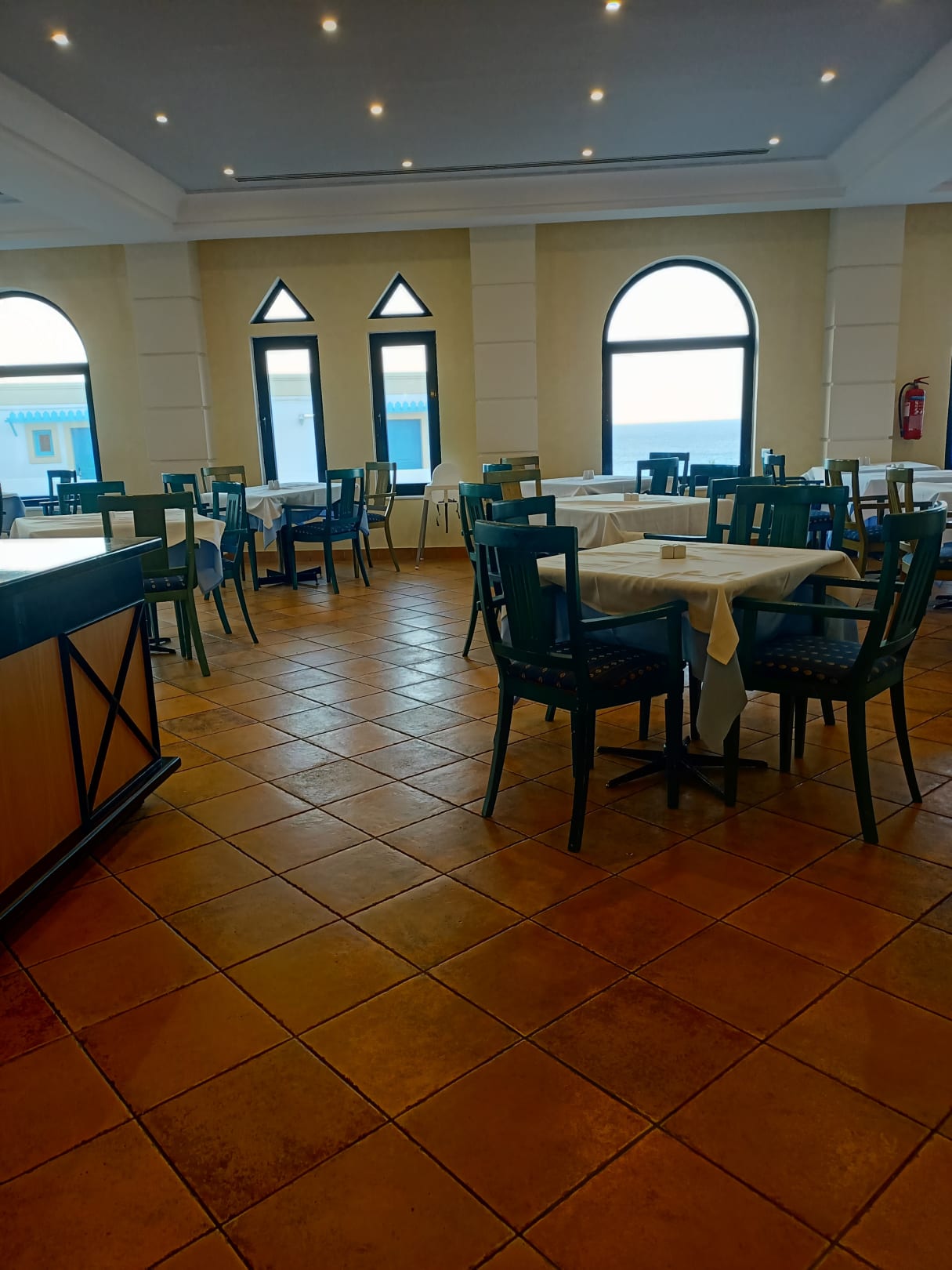 Hauptrestaurant. Hier wird der Gast an den Tisch begleitet.