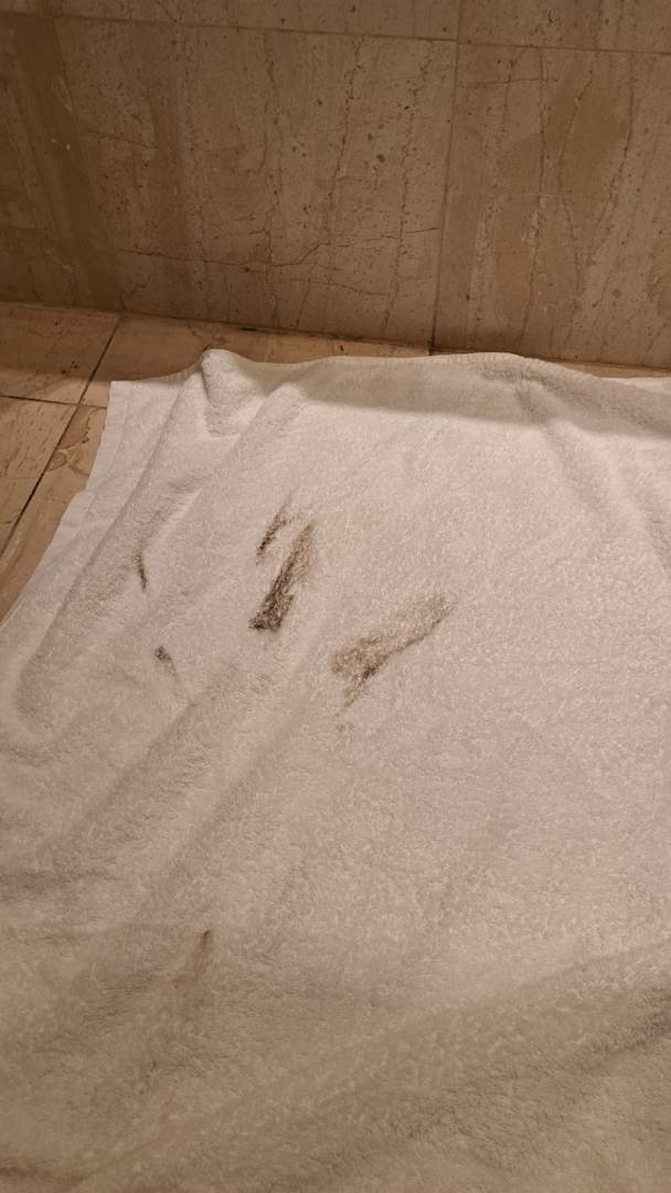 ZimmerBad: nachdem die Wand eigenartige schwarze Flecken zeigte, habe ich darüber gewischt. Das ist das Ergebnis, Schimmel an der kompletten Wand.