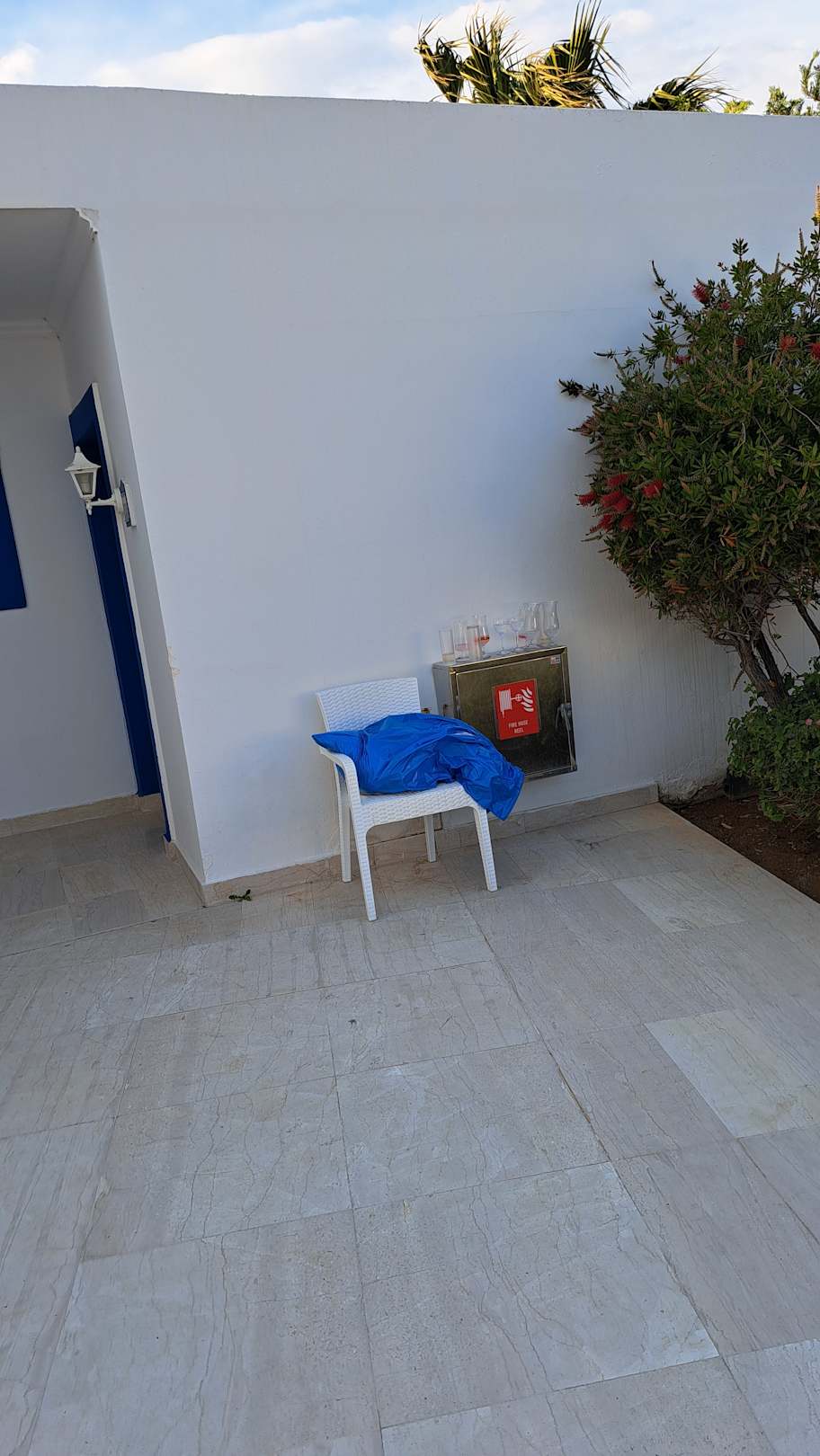 AußenansichtAußenanlage war ungepflegt und dreckig, die Gläser wurden tagelang nicht weggeräumt, Müllsäcke lagen tagelang einfach herum.