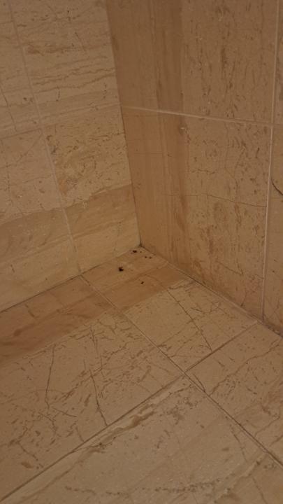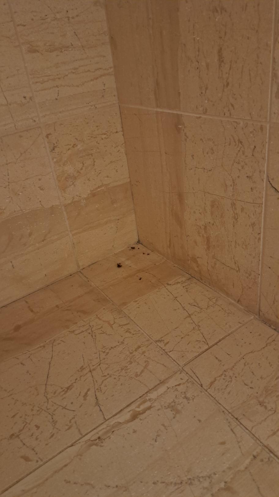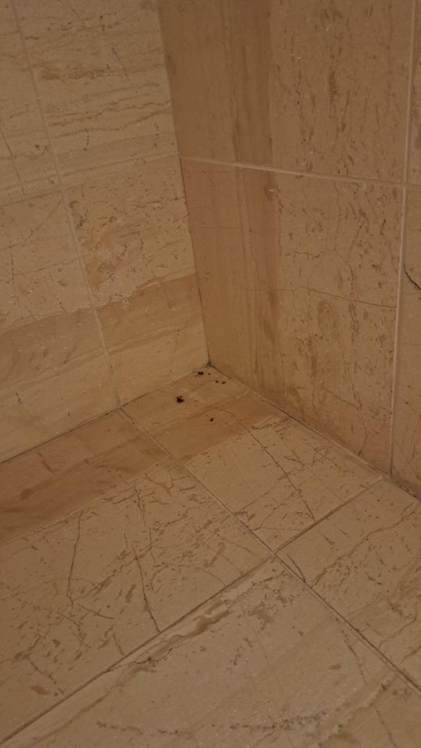 Tote Spinnen und Staub im Bad.