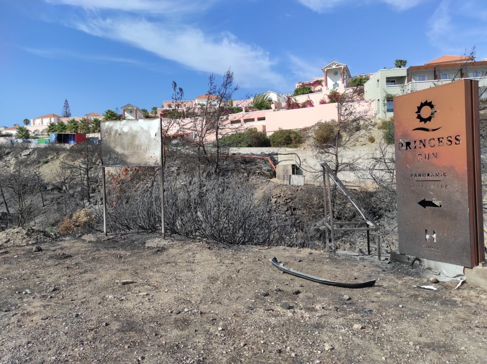 Der Waldbrand erlosch direkt an der Straße gegenüber dem Hotel