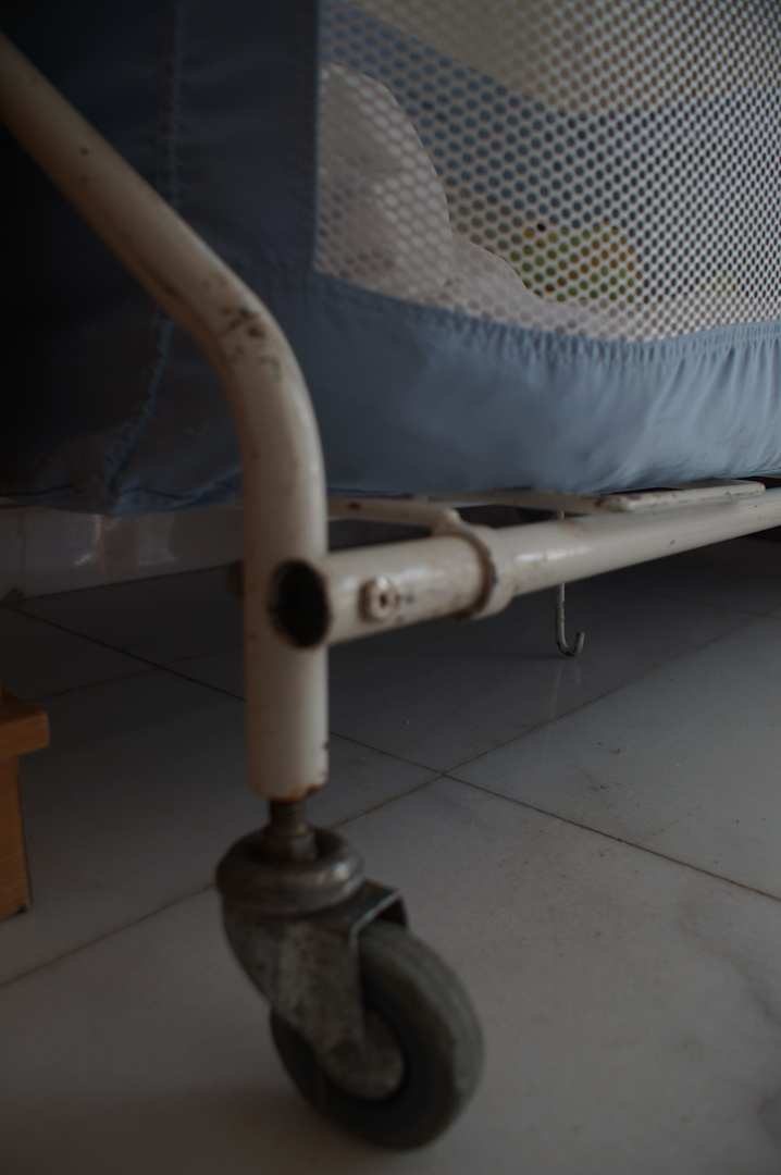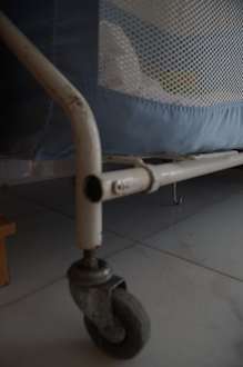 Versüfftes Babybett mit Eisengestell.