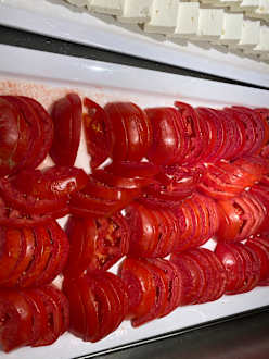 Gemüse das wahrscheinlich schon am Vortag aufgeschnitten wurde, so wie es aussieht.