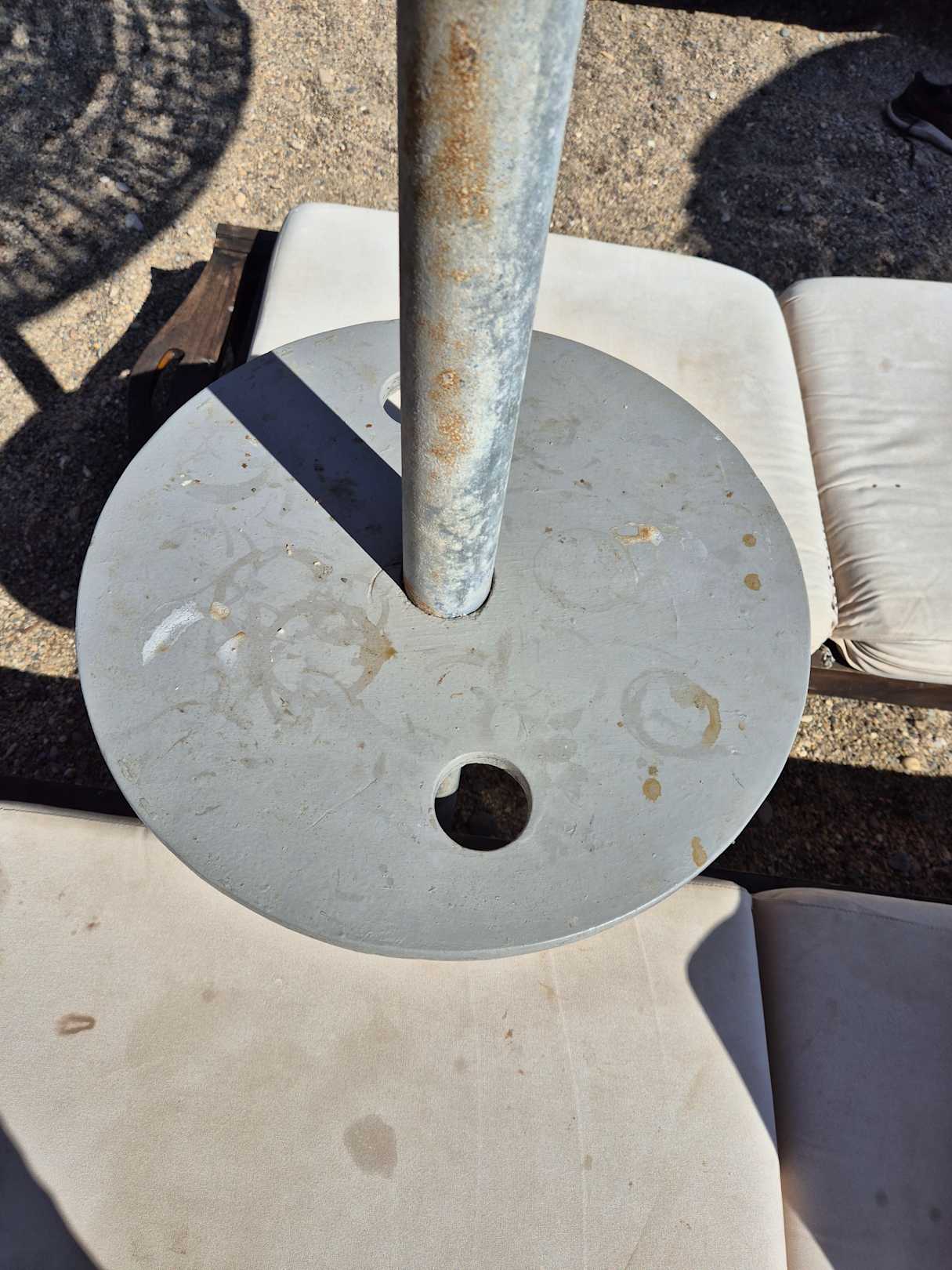 StrandWeitere schmutzige Tische an den Schirmen/Liegen am Strand.