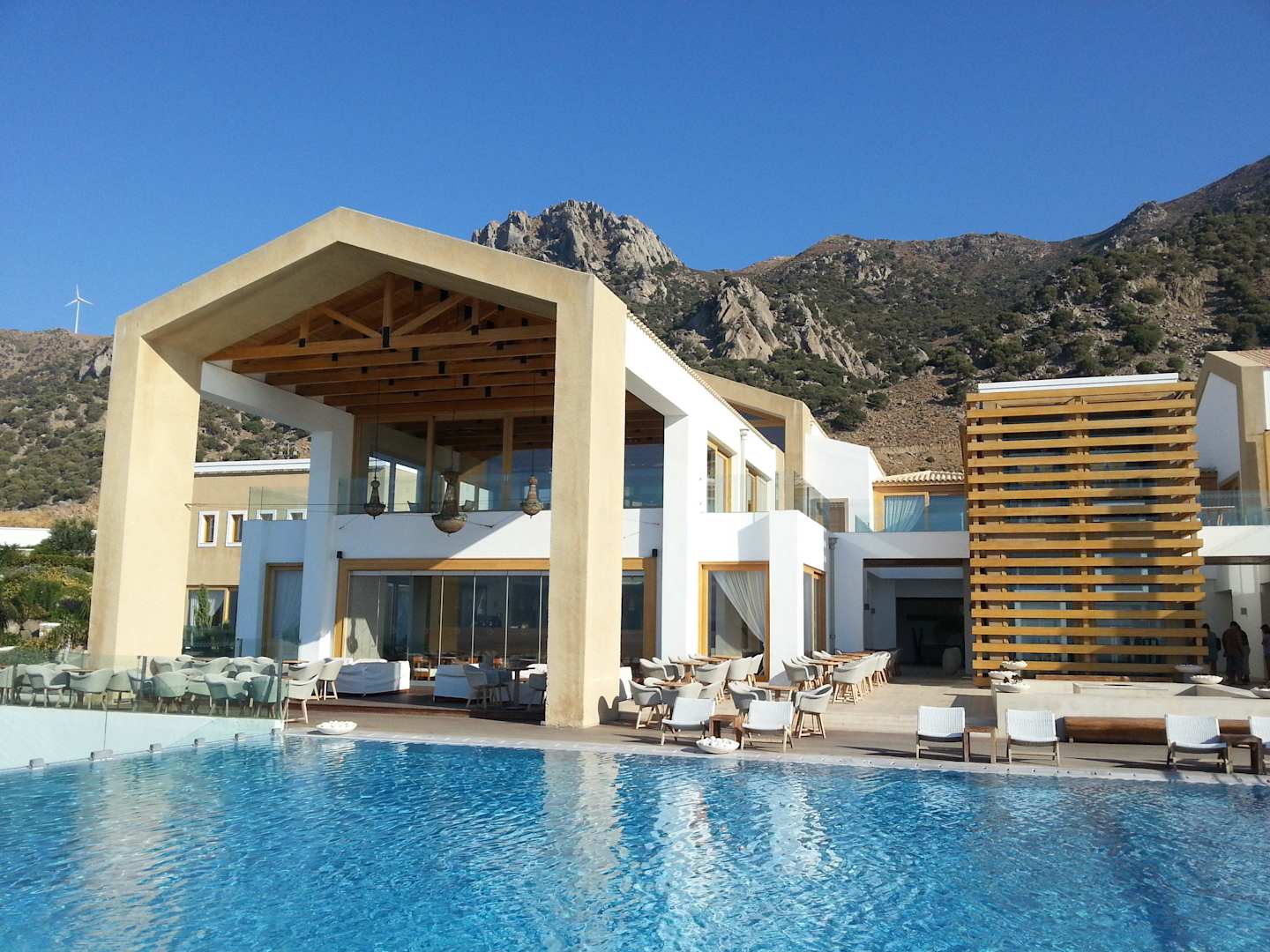 Die Lobby und die Bar von einem der Pool aus