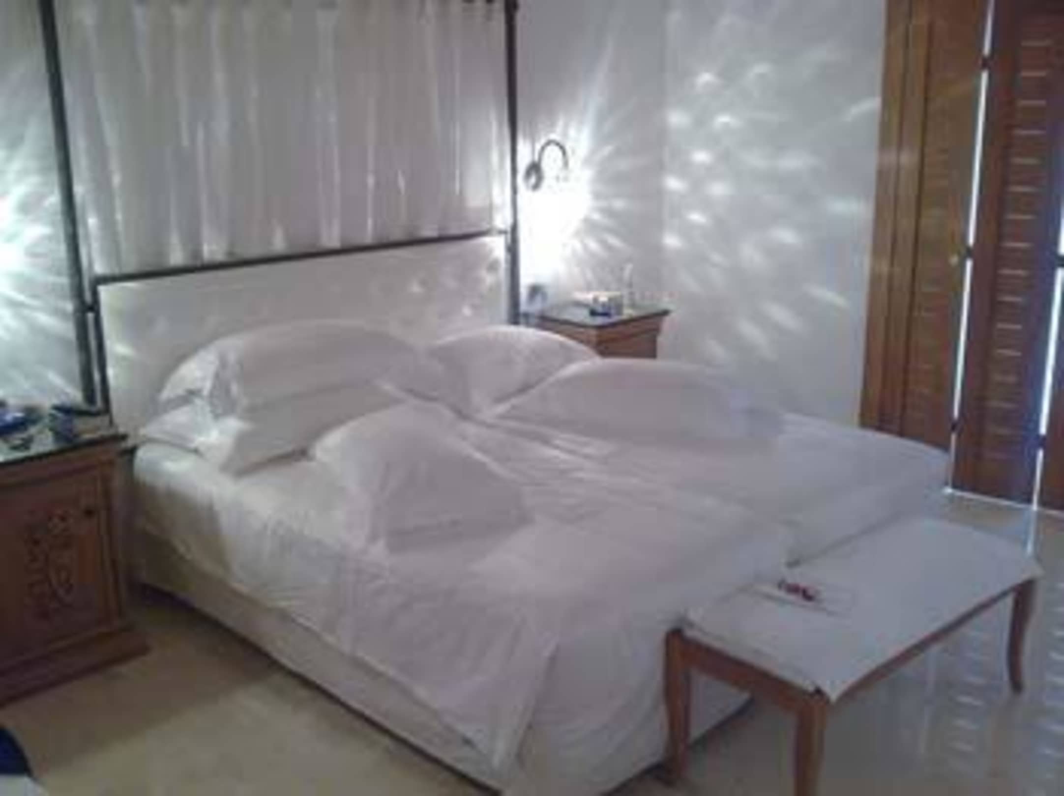 Schlafzimmer des Bungalows 327Schlafzimmer des Bungalows 327, nicht auf dem Bild ist das Rattansofa links vom Bett