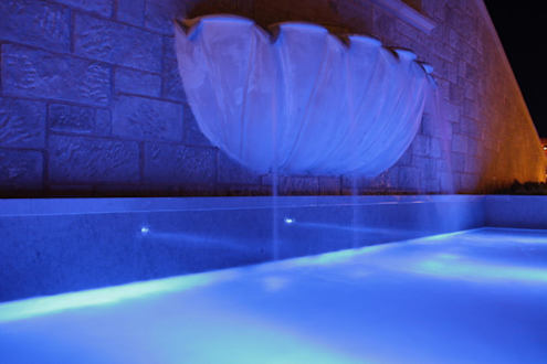 Brunnen am Hauptpool bei Nacht