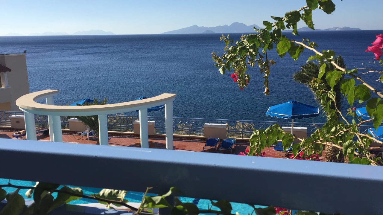 Blick vom Zimmer auf den Meerwasserpool!