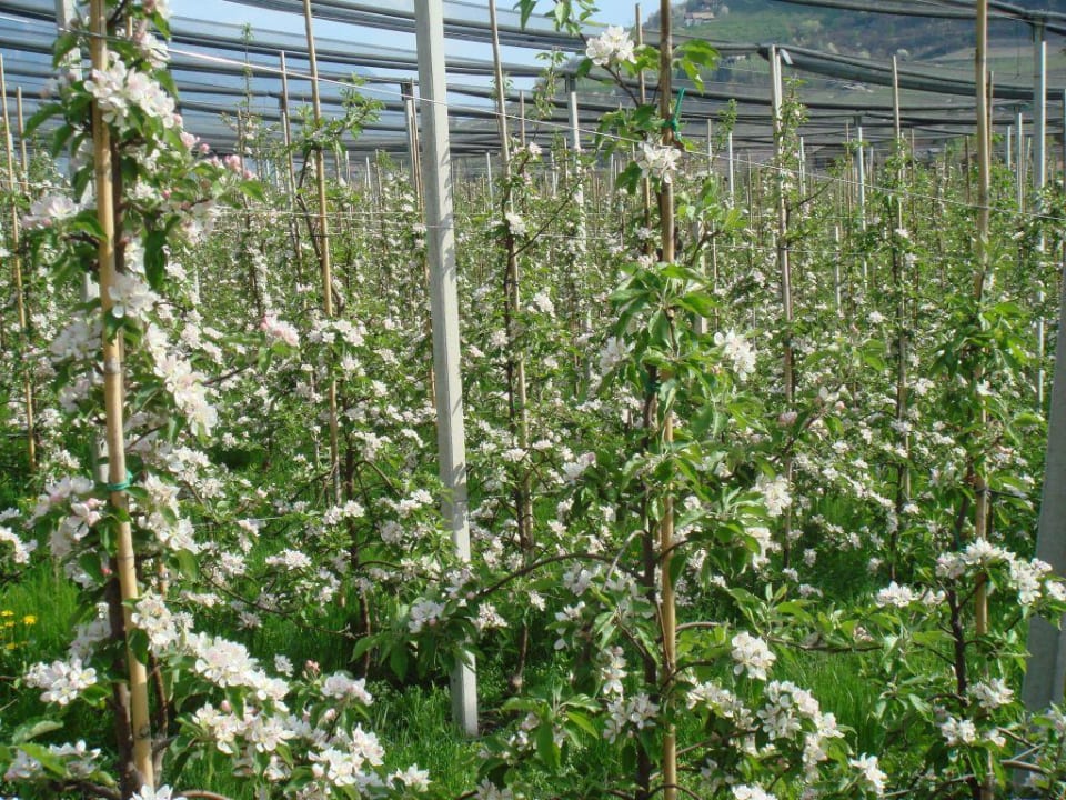 Blick vom Pool in den Obstgarten