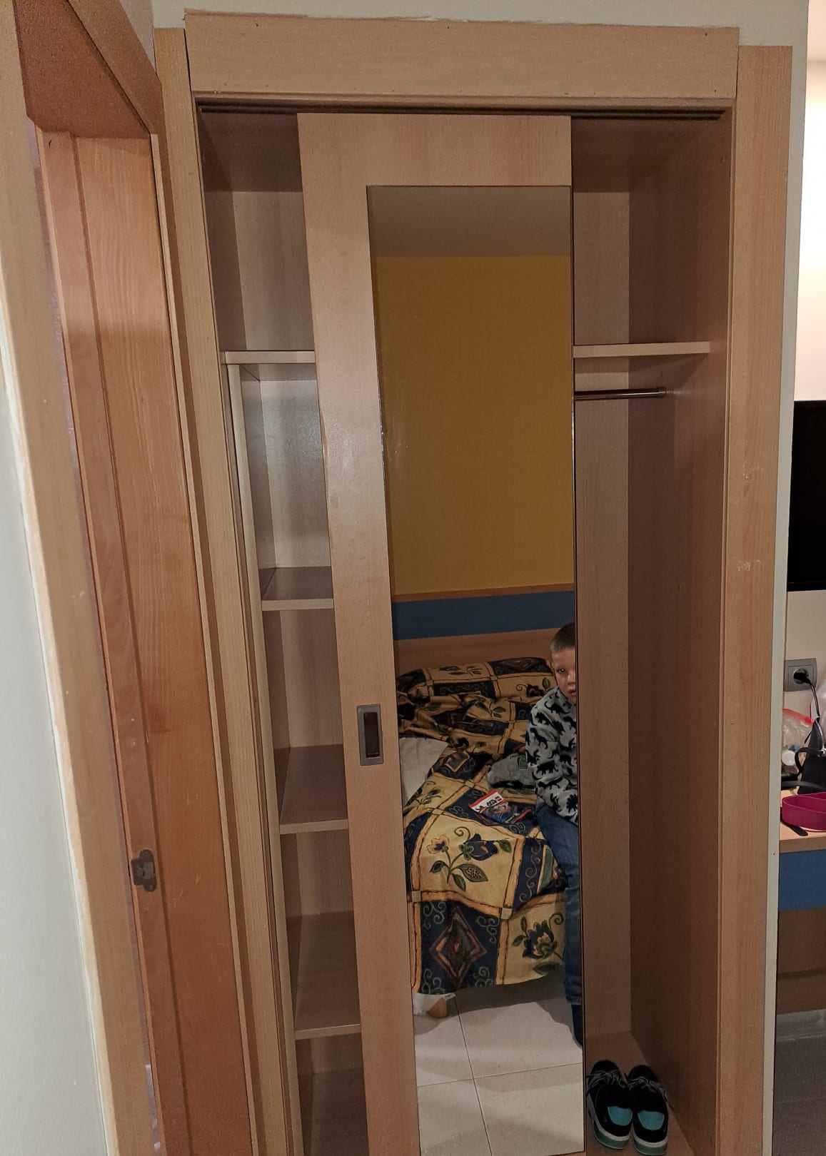 Nur eine Schranktür vorhanden. Die zweite Tür war einfach weg.